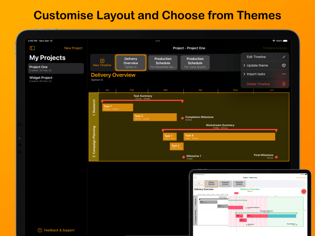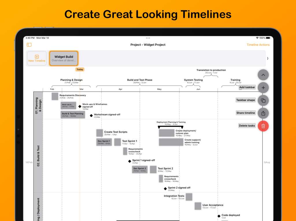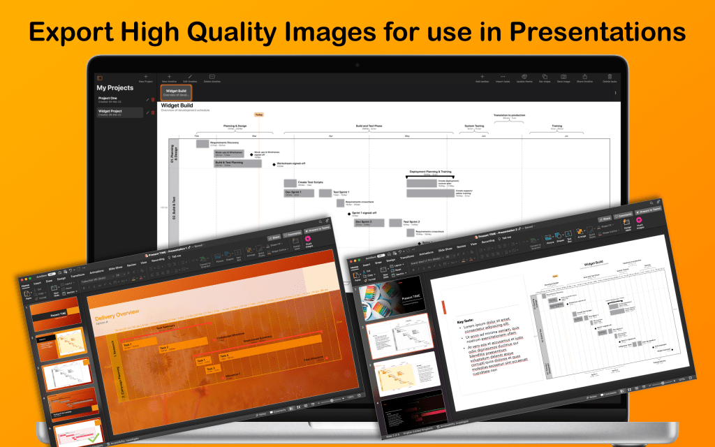 Create professional looking project timelines ready for insertion into documents and presentations.