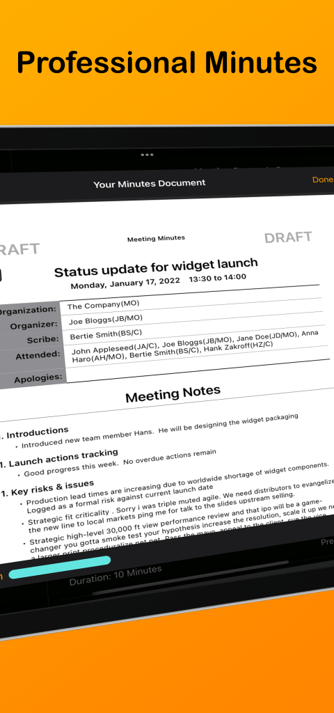 Take control of your meetings with SCRIBE, a powerful and intuitive meeting management app designed for professionals. Effortlessly create, manage, and distribute agendas, capture concise notes, and track action items—all in one seamless experience.